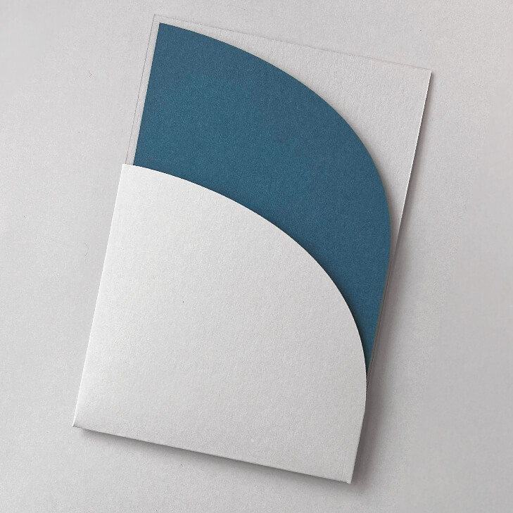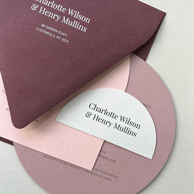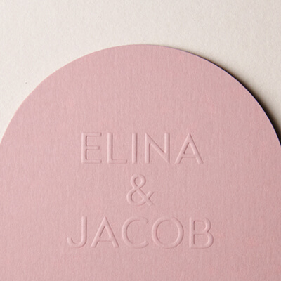 Letterpress printing creates an impression into the card. This can be left 'blind' with no colour, or a Pantone ink fills the impression with a colour or your choice.