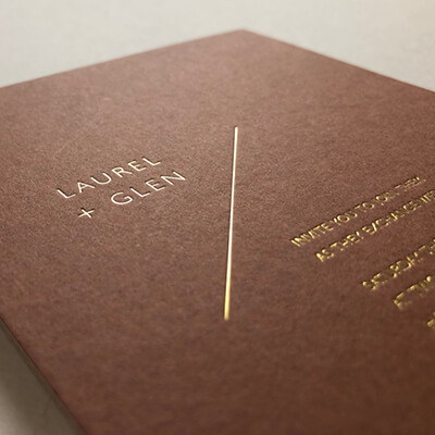 Metallic coloured foil is applied to the surface of your card or paper using heat and pressure to produce a glamorous, reflective sheen.